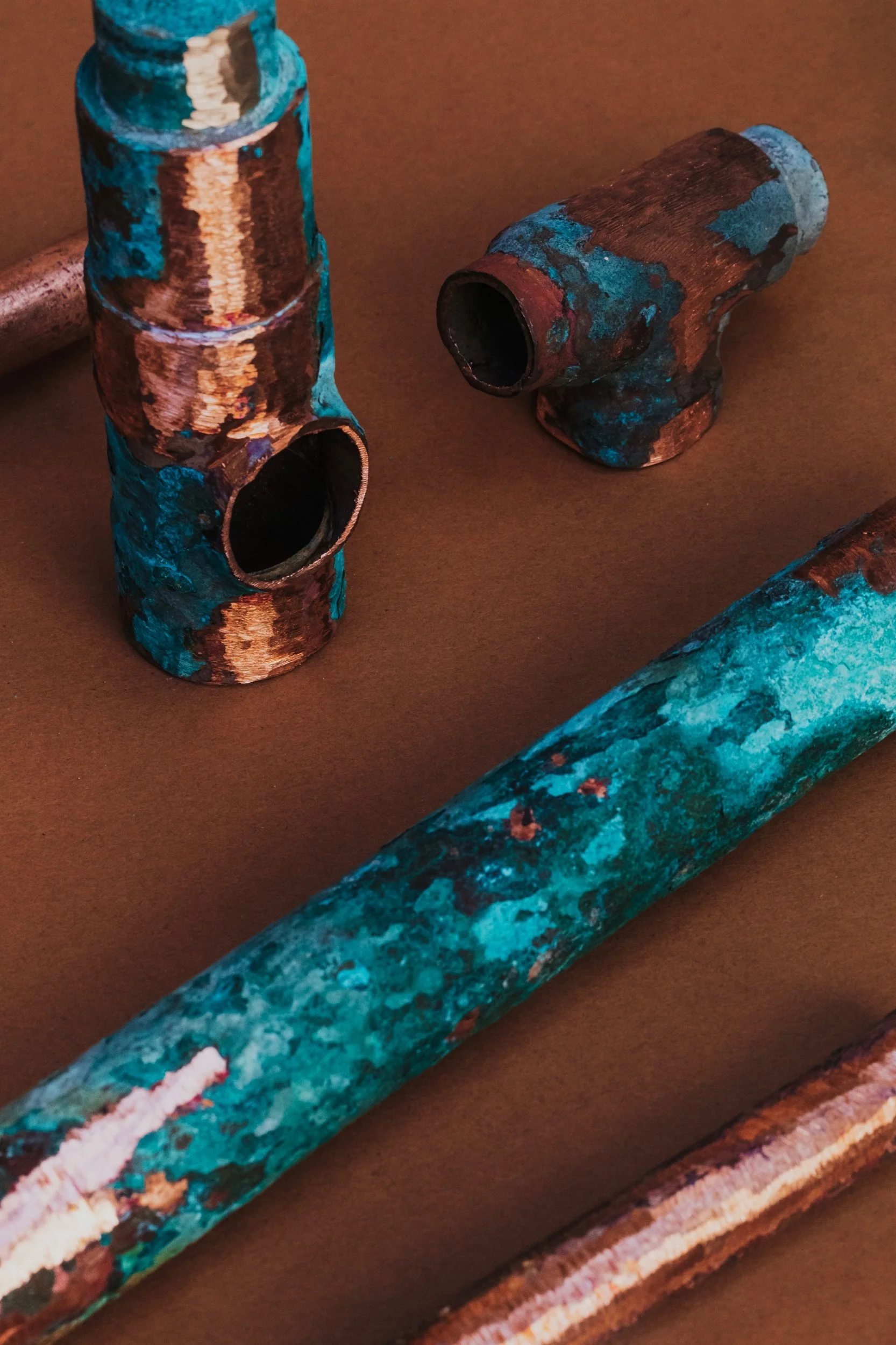 Je propose une intervention de recyclage pour rendre visible le passage de l’eau. Dans un cabinet transparent placé au coeur des Grand Thermes de La Bourboule, des morceaux de tuyaux et jointures sont alignés - cette installation s'apparente à l'exploration d'un laboratoire de recherche. Lors de ma premiere visite aux thermes, j'ai été attirée par la pigmentation des résidus déposés sur les tuyaux usagés. Je décidai alors de les extraire des sous-sols pour travailler l’intensité de leurs couleurs. J’agis sur le cuivre en sectionnant et en assemblant la matière pour la composer comme une peinture. Les fragments décomposés subissent un traitement de polissage semblable aux passages des courants continus de l’eau, mais aussi du temps. À travers le souvenir des ces formes, j’organise un langage visuel modulable propre. Ces éléments détournés ne remplissent plus la fonction à laquelle ils sont communément associés et deviennent énigmatiques. Certains s’encastrent, d’autres existent seuls ; par la simple présence de pigments. Le projet magnifie le dépôt de l'oxydation et l'on découvre un territoire imaginaire semblable aux planètes telluriques. On examine l'écorce craquelante du vert de gris contrastant avec la pureté du cuivre. Le manteau neigeux, la beauté endogène amalgamée par la temporalité de l’eau.